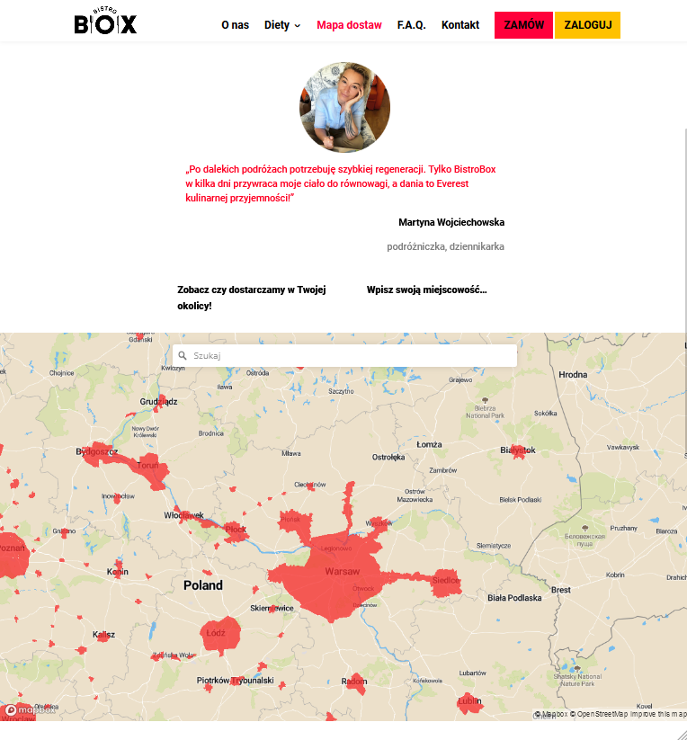 Kluczowym rozwiązaniem w tym projekcie była atrakcyjna prezentacja produktów. Strona została zintegrowana z dedykowanym systemem cateringowym realizujacym proces zamówienia.