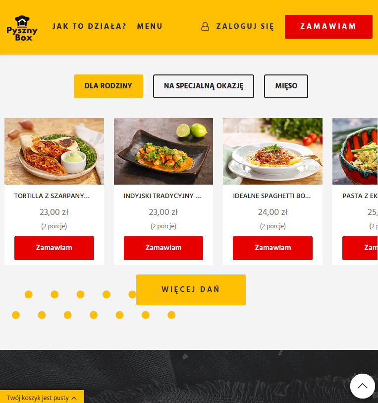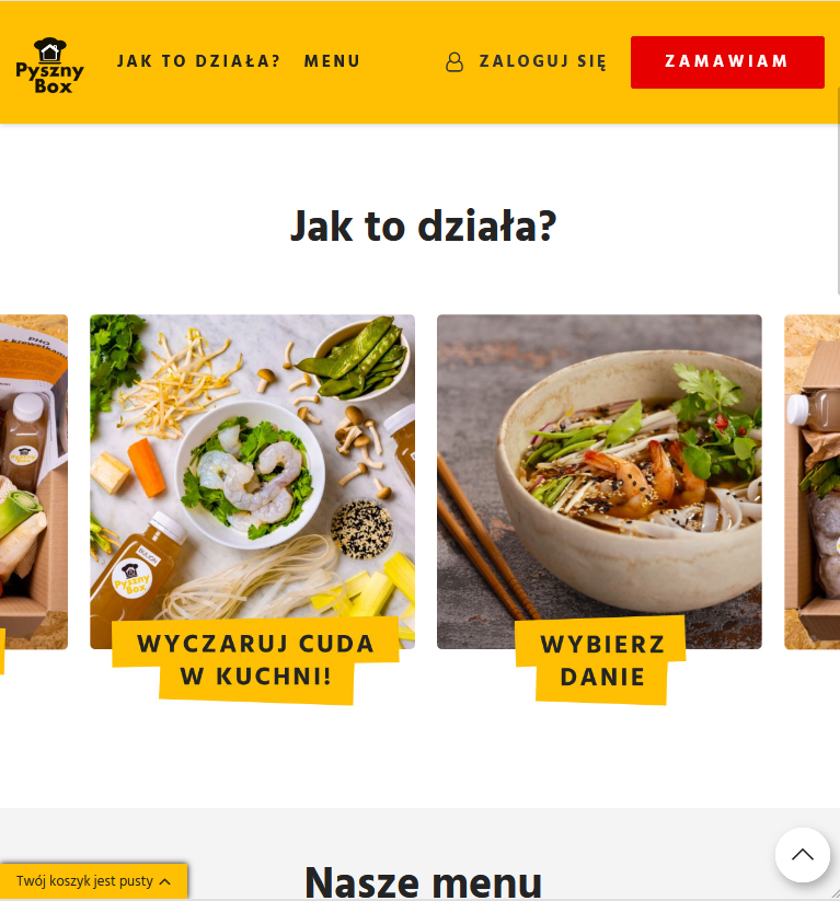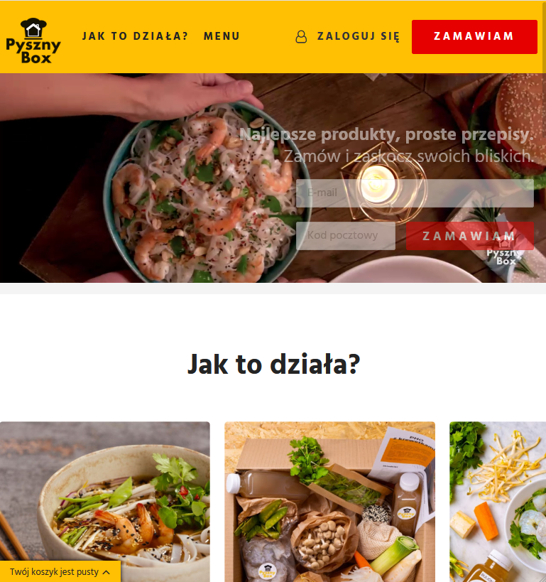 Mimo, że gotowanie z Pysznymbox'em nie jest dużym wyzwaniem nawet dla najbardziej opornego kucharza, my musieliśmy sportać kilku szczególnym wymaganiom przy okazji tego projektu. Przede wszystkim musieliśmy otwarzyć nowy kanał sprzedaży tj. przenieść dotychczasowe działania offline do kanału online. Ważnym aspektem w sektorze food jest atrakcyjna prezentacja produktów - stawialiśmy na rozwiązania, które najlepiej wyeksponują przygotowane dania.