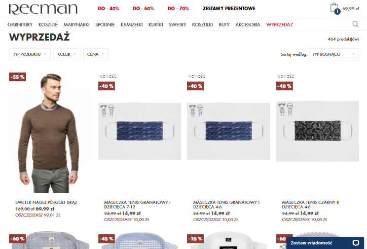 Prace nad tym E-commercem skupiały się na spersonalizowaniu pewnych rozwiązań. Klient prosił, abyśmy wdrożyli narzędzia, które ułatwią zarządzanie sklepem w tak dużej firmie jaką jest Recman Sp. z o.o. Poniżej przedstawiamy nasze działania:
